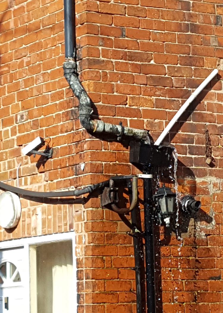 If the gutters get blocked i.e. from debris, leaves, moss etc. this can stop the flow of the water and cause problems such as, dampness and even instability of building structure if the water drips onto the brickwork, or indeed the ground at building level.